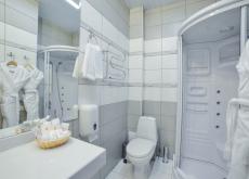 В ванной комнате — душевая кабина, фен, туалетные принадлежности. Халат и тапочки предоставляются по просьбе гостя.