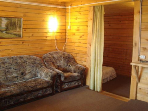 The guest house is built of wood in traditional Russian style.